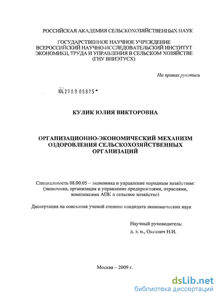 установлены причины низкой результативности государственного регулирования процесса финансово-экономического оздоровления хозяйствующих субъектов аграрной сферы экономики;