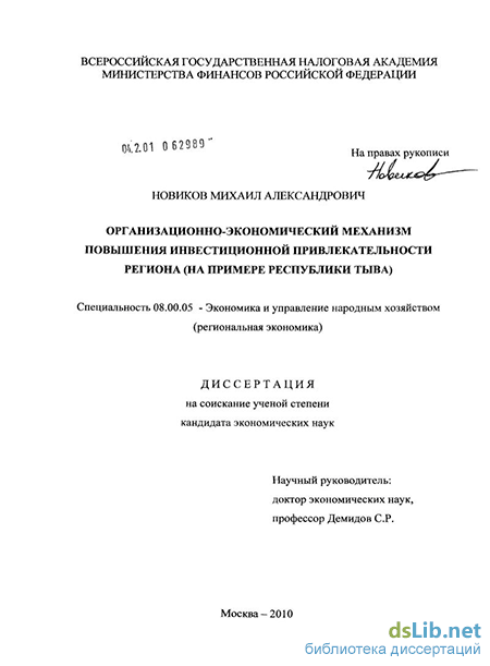 Цель диссертационной работы состоит в разработке организационно-экономического механизма повышения инвестиционной привлекательности Республики Тыва.