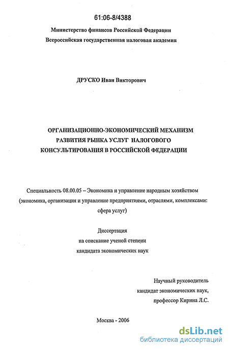• разработать организационно-экономические инструменты повышения эффективности налогового консультирования.