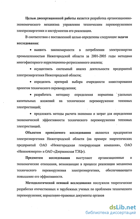 Предметом исследования выступают организационные и экономические отношения, возникающие в процессе реализации механизма технического перевооружения электроэнергетики, обеспечивающего повышение его эффективности.
