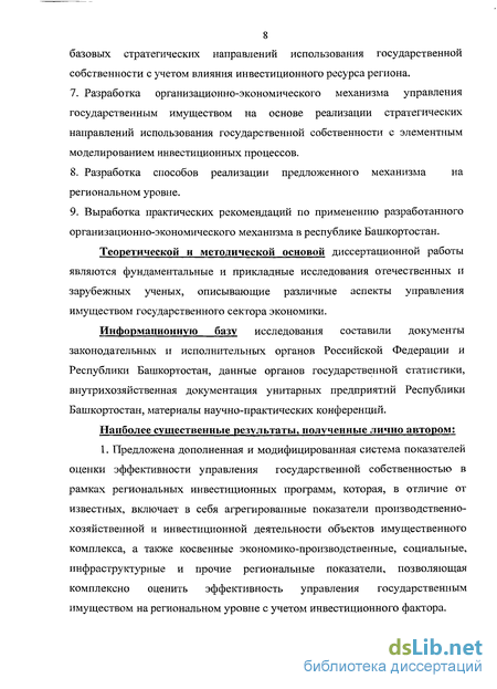 Предложенный в диссертации механизм управления государственной собственностью как инвестиционным ресурсом региона вносит вклад в теорию и практику регионального менеджмента.