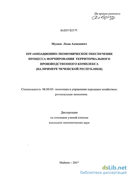 Цель и задачи исследования. Цель диссертационной работы - на основе обобщения теоретико-методологического материала в области формирования и развития территориальных производственных комплексов разработать систему научно-методических положений по организационно-экономическому обеспечению процесса формирования территориальных производственных комплексов в Чеченской Республике, длительное время функционирующей в кризисных условиях.