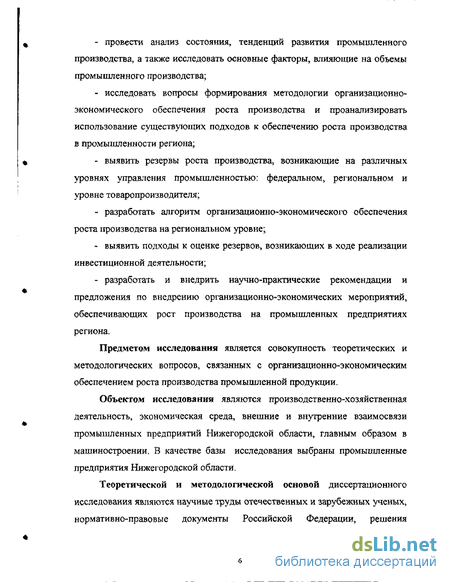 Предметом исследования является совокупность теоретических и методологических вопросов, связанных с организационно-экономическим обеспечением роста производства промышленной продукции.