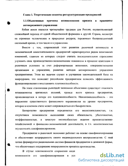 ^ ГЛАВА 1. ТЕОРЕТИЧЕСКИЕ АСПЕКТЫ РЕСТРУКТУРИЗАЦИИ
