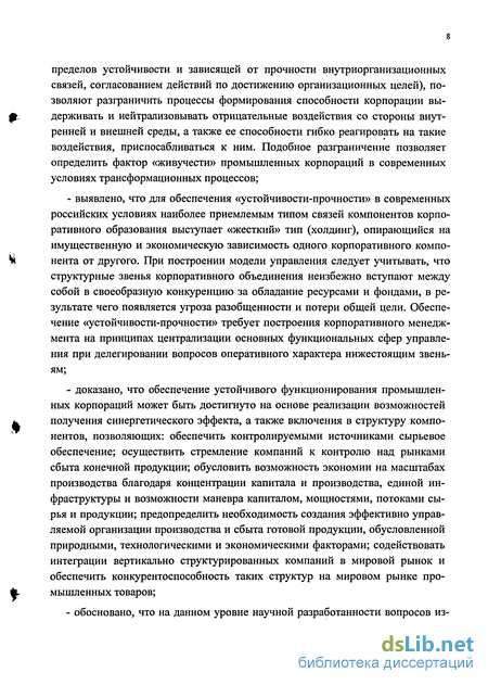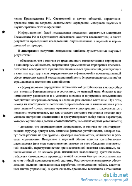 о исследовать с точки зрения теории систем и теории организации свойства современной промышленной корпорации как объекта формирования экономической устойчивости;