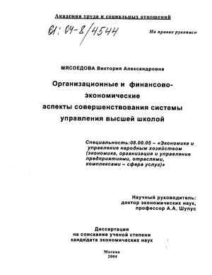 В этой связи целью диссертационного исследования стало раскрытие организационных и финансово-экономических аспектов управления высшей школой, а также разработка комплекса предложений по совершенствованию указанной деятельности в соответствии с объективными требованиями реформируемой российской экономики.