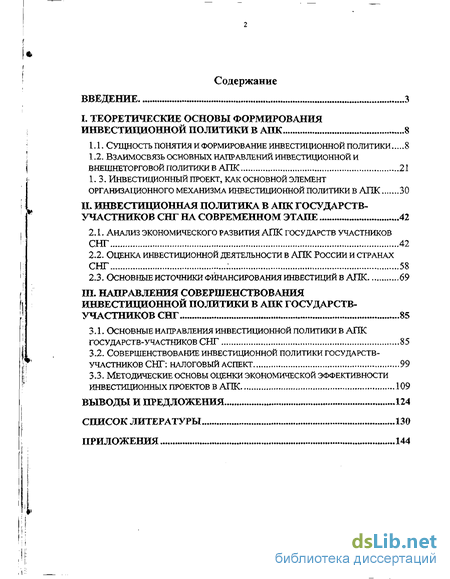 В соответствии с этой целью в работе были поставлены и решены следующие задачи: уточнена сущность понятия «инвестиционная политика» в АПК; раскрыты теоретические основы формирования инвестиционной политики в АПК; выявлена взаимосвязь основных направлений инвестиционной политики в АПК России и других стран Содружества с отдельными направлениями экономической и афарной политики; раскрыта сущность инвестиционного проекта как базового элемента организационного механизма инвестиционной политики в АПК; дан анализ развития экономики АПК России и других государств-участников СНГ во взаимосвязи с инвестиционной деятельностью; проведен анализ основных источников финансирования в АПК на современном этапе; разработаны предложения по совершенствованию инвестиционной политики в АПК с помощью налоговых инструментов;
