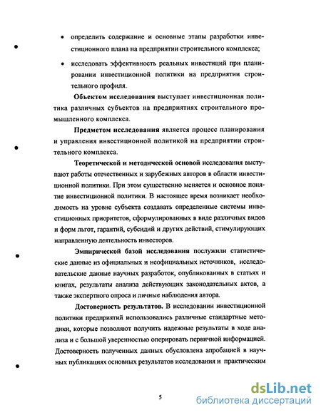 Предметом исследования является процесс планирования и управления инвестиционной политикой на предприятии строительного комплекса.