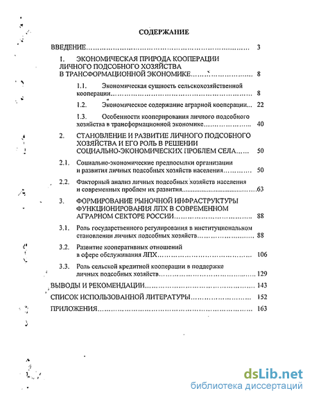раскрыты усиление фрагментарности экономической системы и рост дифференциации крестьянства на селе определившие эволюцию ЛПХ и последовательную смену его моделей от нетоварного (подсобного хозяйства) к товарному, следствием чего является становление и развитие ЛПХ как самостоятельной производственной единицы;