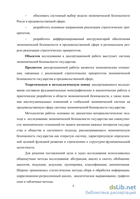 Глава 1 Проблемы обеспечения экономической безопасности России в продовольственной сфере 18
