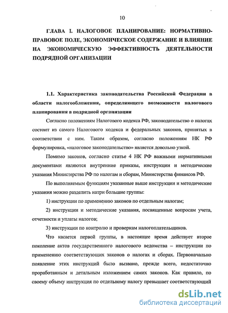 Характеристика законодательства Российской Федерации в области налогообложения, определяющего возможности налогового планирования в подрядной организации 10