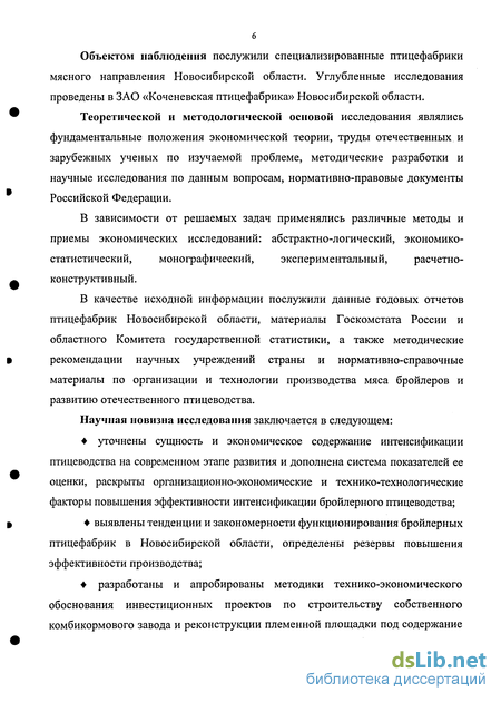 В этих условиях значение и цель интенсификации птицеводства заключается не только в ускоренном наращивании объемов производства мяса птицы, но и в повышении эффективности его производства, с тем, чтобы каждая единица продукции обходилась с меньшими затратами ресурсов. Все сказанное явилось основой выбора темы диссертационной работы и рассматриваемых в ней вопросов.