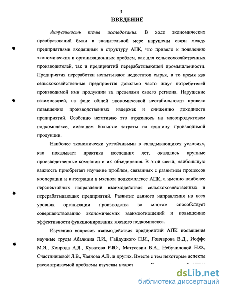 Актуальность темы исследования. В ходе экономических преобразований были в значительной мере нарушены связи между предприятиями входящими в структуру АПК, что привело к появлению экономических и организационных проблем, как для сельскохозяйственных производителей, так и предприятий перерабатывающей промышленности. Предприятия переработки испытывают недостаток сырья, в то время как сельскохозяйственные предприятия довольно часто ищут потребителей производимой ими продукции за пределами своего региона. Нарушение взаимосвязей, на фоне общей экономической нестабильности привело повышению производственных издержек и снижению доходности предприятий. Особенно негативно это отразилось на мясопродуктовом подкомплексе, имеющем большие затраты на единицу производимой продукции.