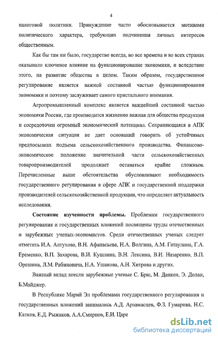 Состояние изученности проблемы. Проблемам государственного регулирования и государственных вложений посвящены труды отечественных и зарубежных ученых-экономистов. Среди отечественных ученых следует отметить И.А. Алтухова, В.Н. Афанасьева, Н.А. Волгина, A.M. Гатаулина, Г.А. Еременко, В.П. Захарова, В.И. Кушлина, В.Н. Лексина, В.И. Назаренко, В.П. Орешина, Л.М. Рабиновича, Н.А. Ушакова, А.Н. Хитрова и других.