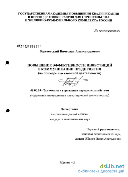 8 обоснованы практические рекомендации по повышению эффективности инвестирования средств российских предприятий в международную выставочную деятельность.