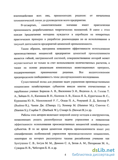 Таким образом, программа повышения эффективности использования производственных мощностей предприятия цементной промышленности является гибкой, настраиваемой системой, совершенствование которой может осуществляться не только за счет использования количественных расчетов, а также на основе реализации комплексных инвестиционных программ, поддерживающих принимаемые решения. Все вышеизложенное предопределило злободневность темы диссертационного исследования.