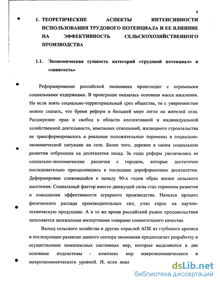 1. Теоретические аспекты интенсивности использования трудового потенциала и ее влияния на эффективность сельскохозяйственных предприятий 8