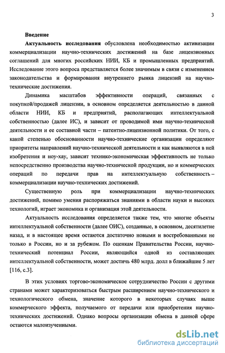 Актуальность исследования определяется также тем, что многие объекты интеллектуальной собственности (далее ОИС), созданные, в основном, десятилетие назад, и в настоящее время остаются достаточно новыми и востребованными не только в России, но и за рубежом. По оценкам Правительства России, научно-технический потенциал России, являющийся одной из составляющих интеллектуальной собственности, может достичь 480 млрд. долл в ближайшие 5 лет [116, с.З].