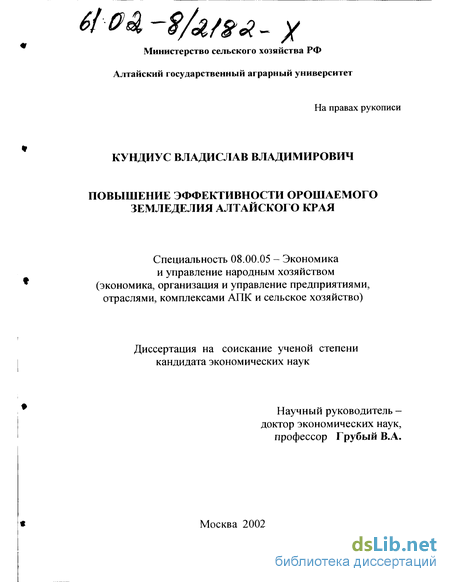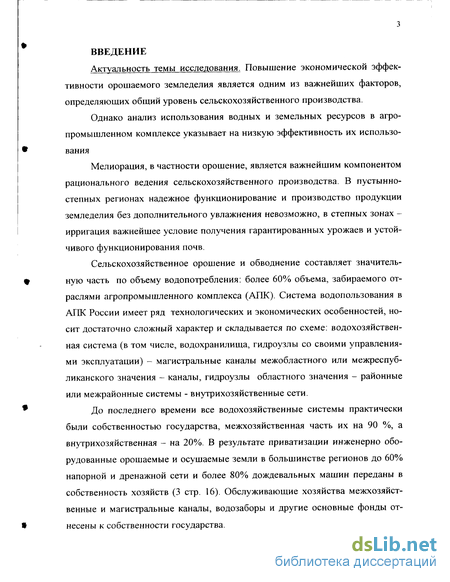 Актуальность темы исследования. Повышение экономической эффективности орошаемого земледелия является одним из важнейших факторов, определяющих общий уровень сельскохозяйственного производства.