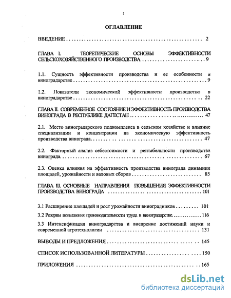 Цель диссертационной работы. Цель исследования состоит в том, чтобы на основе изучения производственно-экономического состояния агропромышленного комплекса региона и факторов, влияющих на эффективность виноградарства определить направления и разработать научно-обоснованные рекомендации по повышению эффективности производства винограда в рыночных условиях хозяйствования.