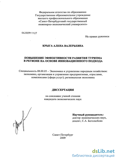 Однако исследования указанных авторов в значительной степени не затрагивали проблему, связанную с необходимостью формирования организационного-экономического механизма эффективного развития туризма в регионе, основанного на инновационном подходе, что определило цели-и задачи диссертационного исследования.