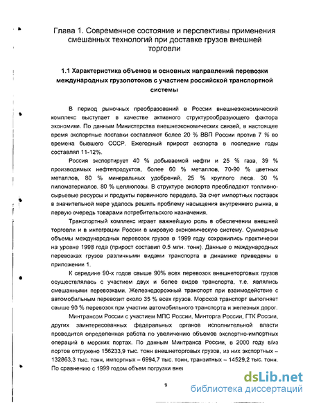Глава 1. Современное состояние и перспективы применения смешанных технологий при доставке грузов внешней торговли 9