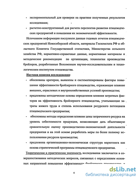 Однако ряд важных вопросов проблемы повышения эффективности промышленного птицеводства в условиях формирования рыночных отношений в хозяйствах Новосибирской области требуют определенных уточнений и дальнейших исследований, поскольку все еще недостаточно изучены методические и организационные вопросы, связанные с определением основных