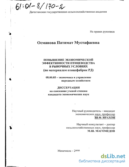 — определены резервы повышения экономической эффективности птицеводства за счет комплексного использования его продукции и совершенствования технологического уровня производства.