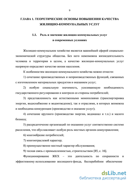 Глава 1. Теоретические основы повышения качества жилищно-коммунальных услуг 9
