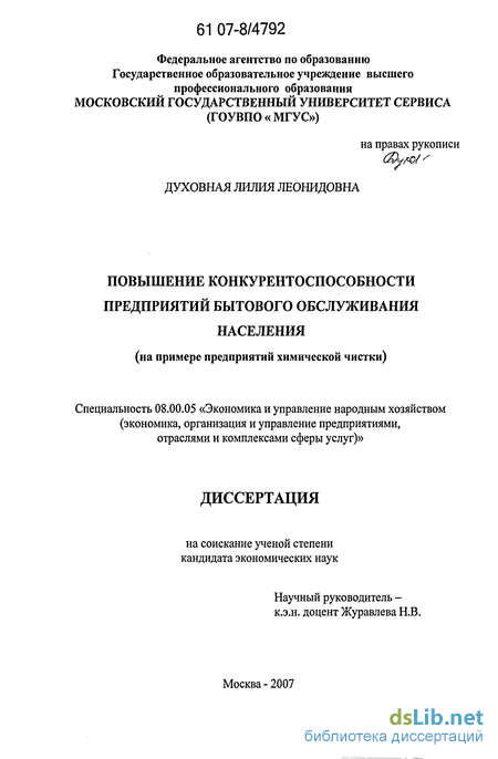 Цель и задачи исследования. Целью диссертационного исследования является научно-методическое обоснование оценки конкурентоспособности предприятий химической чистки и разработка практических рекомендаций по повышению конкурентных преимуществ предприятий данной группы услуг.