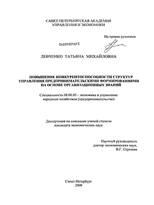 Соответствие темы диссертации требованиям паспорта специальностей ВАК. Исследование выполнено в рамках специальности 08.00.05 - Экономика и управление народным хозяйством (предпринимательство) и соответствует п. 10.11. «Формирование и развитие конкурентоспособности системы управления предпринимательскими структурами» паспорта специальностей ВАК Министерства образования РФ (по экономическим наукам).