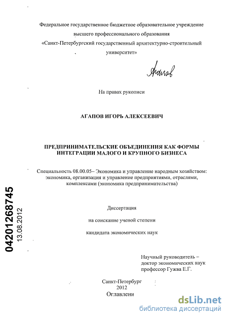 Степень разработанности проблемы. До середины ХХ века малое предпринимательство рассматривалось в экономической науке на Западе в качестве одной из многочисленных форм предпринимательской деятельности. В трудах основоположников экономической науки А.Смита, Ж.Б.Сэя, Д.Рикардо, Дж.С.Милля и др. можно найти в основном лишь упоминания об особенностях малого предпринимательства по сравнению с крупным. В зарубежной науке положение изменилось во второй половине ХХ века, когда малое предпринимательство получило существенное развитие. Но в большей части эти исследования касались менеджмента и маркетинга. Их проводили Г.Берл, П.Вэйл, Д.Гэммон, М.Мэскон, Д.Стэнворт, В.Хойер и др. В отечественной науке можно выделить работы Асаула А.Н., Асаул В.В., Бузырева В.В., Васильева В.М., Панибратова Ю.П. и др. В работах вышеназванных авторов можно найти и серьезные наработки, связанные с исследованием различных хозяйственных объединений, в которые вовлечены малые предприятия.
