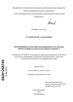 Новизна диссертационной работы состоит в развитии теории взаимодействия малого и крупного предпринимательства в рыночной экономике, выявлении эффективных форм интеграции предпринимательства в процессе создания предпринимательских объединений.