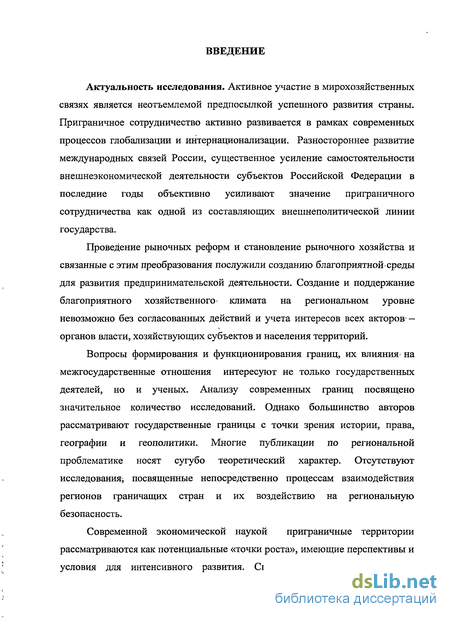 Актуальность исследования. Активное участие в мирохозяйственных связях является неотъемлемой предпосылкой успешного развития страны. Приграничное сотрудничество активно развивается в рамках современных процессов глобализации и интернационализации. Разностороннее развитие международных связей России, существенное усиление самостоятельности внешнеэкономической деятельности субъектов Российской Федерации в последние годы объективно усиливают значение приграничного сотрудничества как одной из составляющих внешнеполитической линии государства.