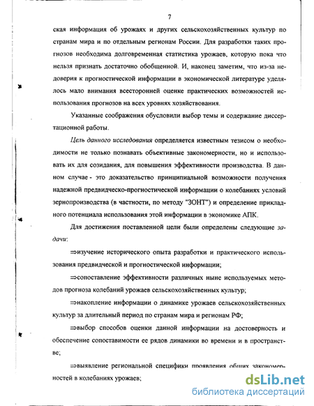 Цель данного исследования определяется известным тезисом о необходимости не только познавать объективные закономерности, но и использовать их для созидания, для повышения эффективности производства. В данном случае - это доказательство принципиальной возможности получения надежной предвидческо-прогностической информации о колебаниях условий зернопроизводства (в частности, по методу "ЗОНТ") и определение прикладного потенциала использования этой информации в экономике АПК.
