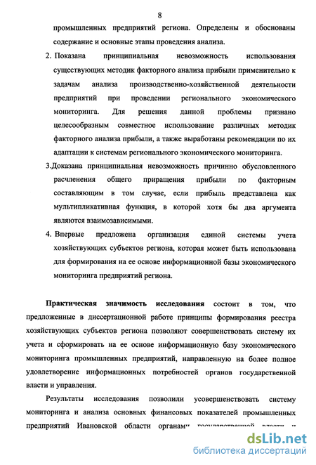 1. Впервые обоснована целесообразность использования факторного анализа прибыли в системах экономического мониторинга