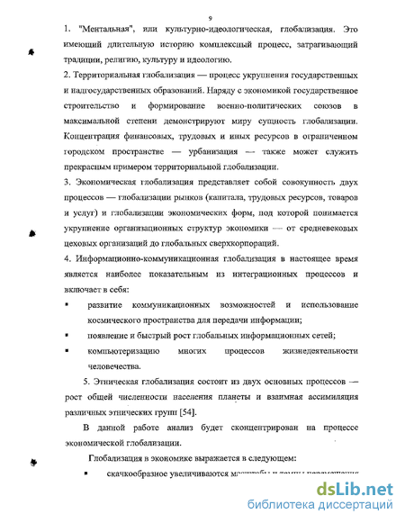 процессов мирохозяйственной глобализации, учитывающие специфику