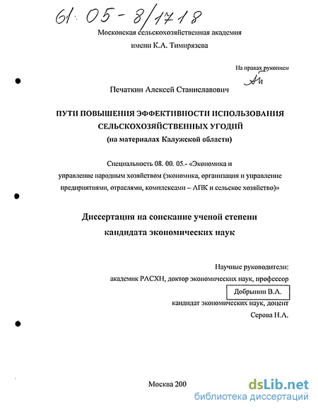 Вместе с тем применительно к периоду экономических реформ и рыночных отношений недостаточно изученными остаются проблемы экономически обоснованной эффективности использования земель с/х назначения. Важность указанных проблем и пути ее повышения на основе их экономической оценки и ее недостаточная научная и методическая разработанность в рыночных условиях и конкретных региональных особенностей ЛПК определили цели и задачи диссертации.
