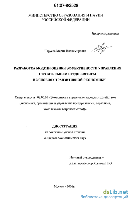 Целью диссертационного исследования является развитие теоретических и методических принципов оценки эффективности управления строительным предприятием в условиях транзитивной экономики.