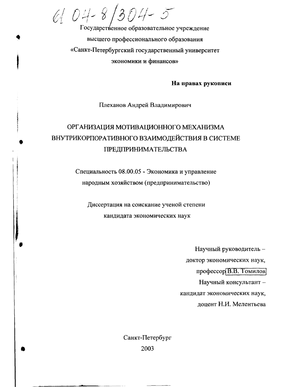 Основная цель диссертационного исследования состоит в совершенствовании теоретико-методологических основ мотивационного механизма внутрикорпоративного взаимодействия в системе предпринимательства.