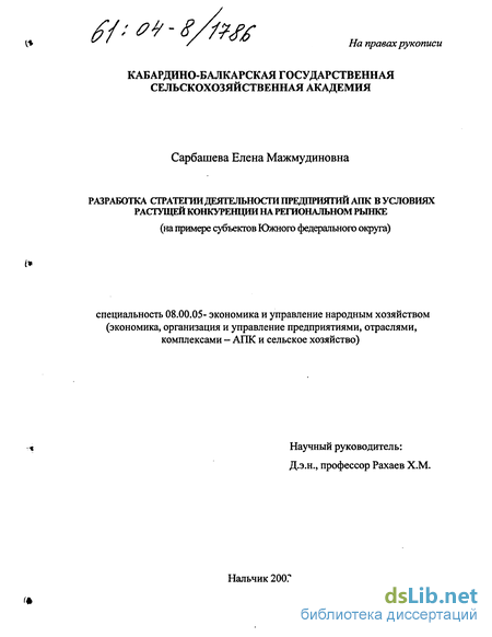 Цель и задачи исследования. Цель исследования заключается в разработке на методическом уровне и с выходом на практическую реализацию рекомендаций по формированию стратегии создания и деятельности предприятий АПК на региональных рынках с параметрами внешней среды аналогичным тем, которые имеют место в КБР.