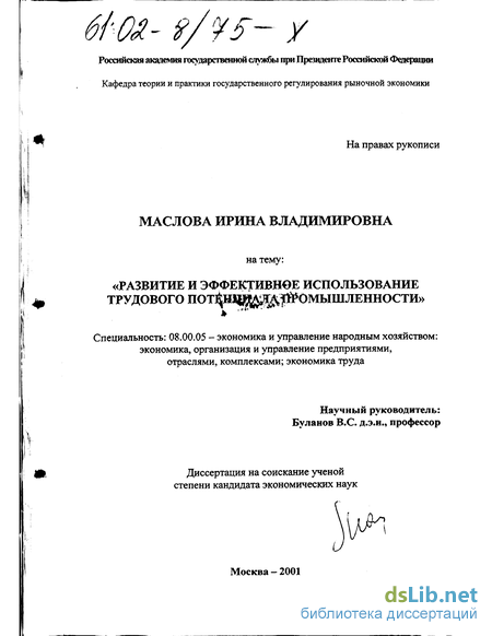 Предметом исследования являются качественные и количественные характеристики, социально-экономические отношения, возникающие в связи с формированием, развитием и использованием трудового потенциала промышленности в рыночных условиях.