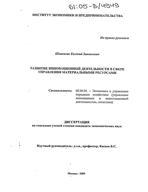 Научная новизна диссертационного исследования состоит в разработке методических рекомендаций и принципов использования управленческих инноваций в сфере управления материальными ресурсами, реализация которых позволяет оптимально управлять ресурсами в логистической системе организации.