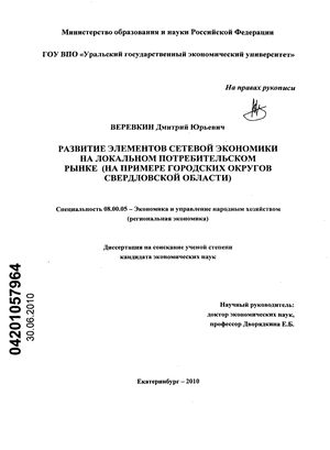 Недостаточная разработанность теоретических и методических подходов, необходимость учета многообразия новых факторов в становлении и развитии сетевой экономики, в том числе и на локальном потребительском рынке, высокая практическая их значимость обусловили выбор темы диссертационного исследования, объекта и предмета работы, постановку ее цели и задач.