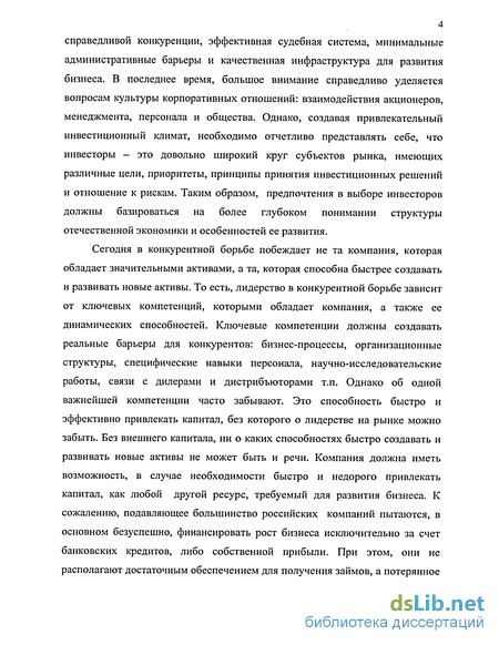 Сегодня в конкурентной борьбе побеждает не та компания, которая обладает значительными активами, а та, которая способна быстрее создавать и развивать новые активы. То есть, лидерство в конкурентной борьбе зависит от ключевых компетенций, которыми обладает компания, а также ее динамических способностей. Ключевые компетенции должны создавать реальные барьеры для конкурентов: бизнес-процессы, организационные структуры, специфические навыки персонала, научно-исследовательские работы, связи с дилерами и дистрибьюторами т.п. Однако об одной важнейшей компетенции часто забывают. Это способность быстро и эффективно привлекать капитал, без которого о лидерстве на рынке можно забыть. Без внешнего капитала, ни о каких способностях быстро создавать и развивать новые активы не может быть и речи. Компания должна иметь возможность, в случае необходимости быстро и недорого привлекать капитал, как любой другой ресурс, требуемый для развития бизнеса. К сожалению, подавляющее большинство российских компаний пытаются, в основном безуспешно, финансировать рост бизнеса исключительно за счет банковских кредитов, либо собственной прибыли. При этом, они не располагают достаточным обеспечением для получения займов, а потерянное