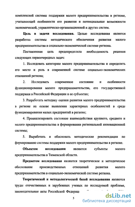 Цель и задачи исследования. Целью исследования является разработка системы методического обеспечения развития малого предпринимательства в социально-экономической системе региона.