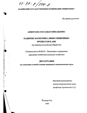 Апробация работы. Отдельные вопросы диссертационного исследования неоднократно рассматривались на научно-практических конференциях профессорско - преподавательского состава Марийского технического университета (1996 - 1999 гг.), всероссийских конференциях Вавиловских чтений: "Диалог наук на рубеже XX-XXI веков и глобальные проблемы современности" (1996 - 1998 гг.). Результаты диссертационного исследования обсуждались на научно - техническом совете Министерства сельского хозяйства и продовольствия Республики Марий Эл. Ряд положений диссертации применяется в учебном процессе по дисциплинам "Маркетинг", "Управление в строительстве" на экономическом и строительном факультетах МарГТУ.
