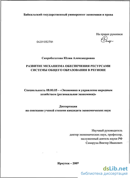 Степень,разработанности проблемы. В диссертационном исследовании использовались работы как российских, так и зарубежных авторов, в которых отражены теоретические и практические положения в области развития экономического механизма обеспечения ресурсами образовательных систем территории (региона).