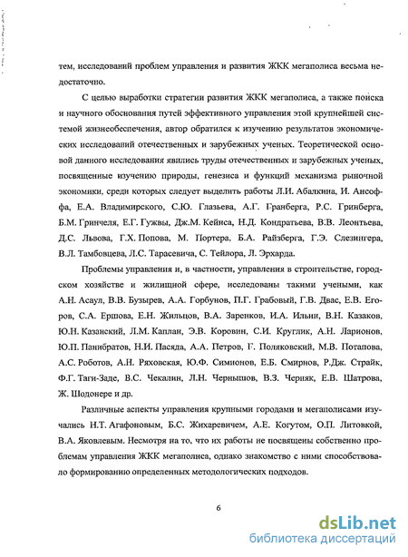 С целью выработки стратегии развития ЖКК мегаполиса, а также поиска и научного обоснования путей эффективного управления этой крупнейшей системой жизнеобеспечения, автор обратился к изучению результатов экономических исследований отечественных и зарубежных ученых. Теоретической основой данного исследования явились труды отечественных и зарубежных ученых, посвященные изучению природы, генезиса и функций механизма рыночной экономики, среди которых следует выделить работы Л.И. Абалкина, И. Ансоф-фа, Е.А. Владимирского, СЮ. Глазьева, А.Г. Гранберга, Р.С. Гринберга, Б.М. Гринчеля, Е.Г. Гужвы, Дж.М. Кейнса, Н.Д. Кондратьева, В'.В. Леонтьева, Д.С. Львова, Г.Х. Попова, М. Портера, Б.А. Райзберга, Г.Э. Слезингера, В.Л. Тамбовцева, Л.С. Тарасевича, С. Тейлора, Л. Эрхарда.