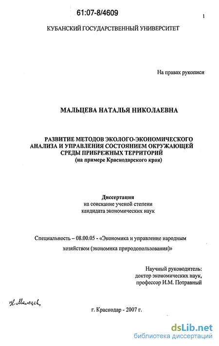 Федерации по вопросам природопользования, охраны окружающей среды и обеспечения устойчивого развитию экономики. В процессе исследования использовались методические и нормативные материалы Министерства природных ресурсов РФ, Росстата, Росприроднадзора РФ, других министерств и ведомств, Управления Росприроднадзора по Краснодарскому краю отечественных и зарубежных организаций в области экономики природопользования и охраны окружающей среды.